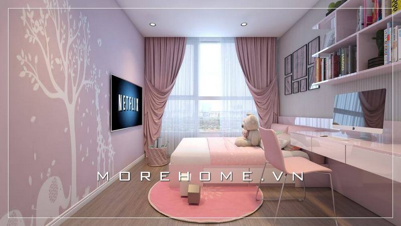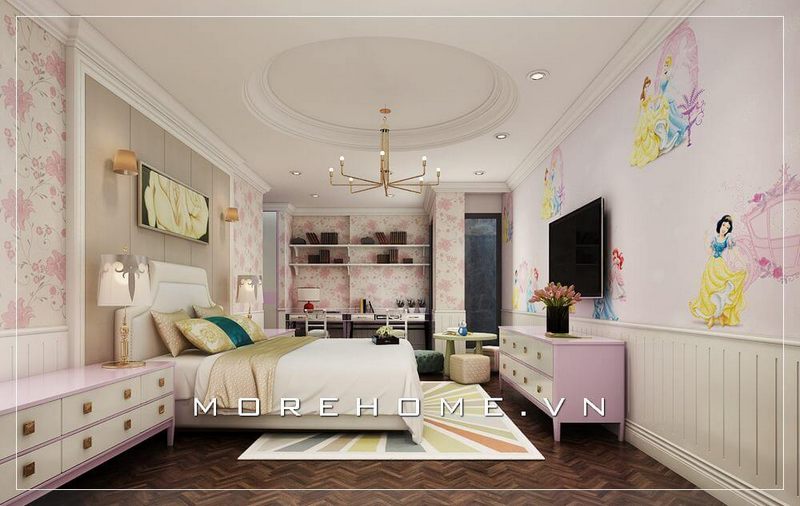 Mẫu thiết kế nội thất phòng ngủ cho bé gái tại biệt thự cao cấp để tạo ra những cảm giác ấn tượng.