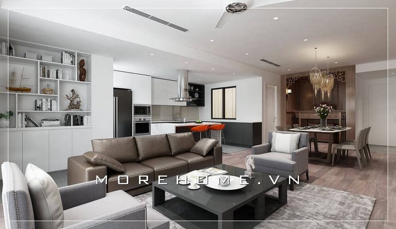 Thiết kế nội thất cho phòng khách liền bếp của căn hộ chung cư sẽ là một giải pháp tuyệt vời để tạo ra cảm giác không gian rộng rãi mà không cần phải mở rộng thực sự.